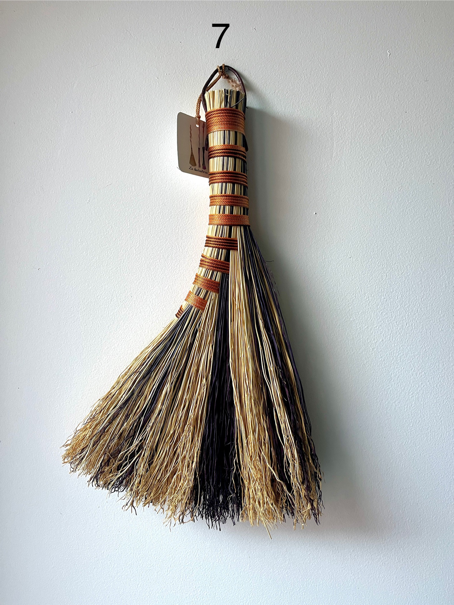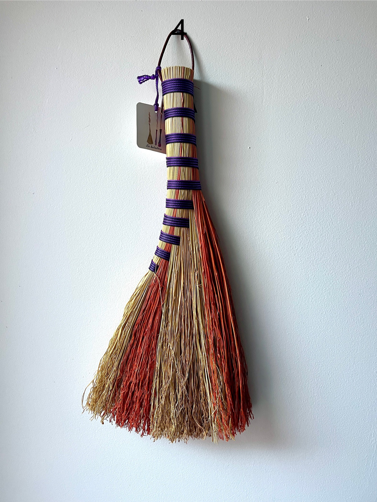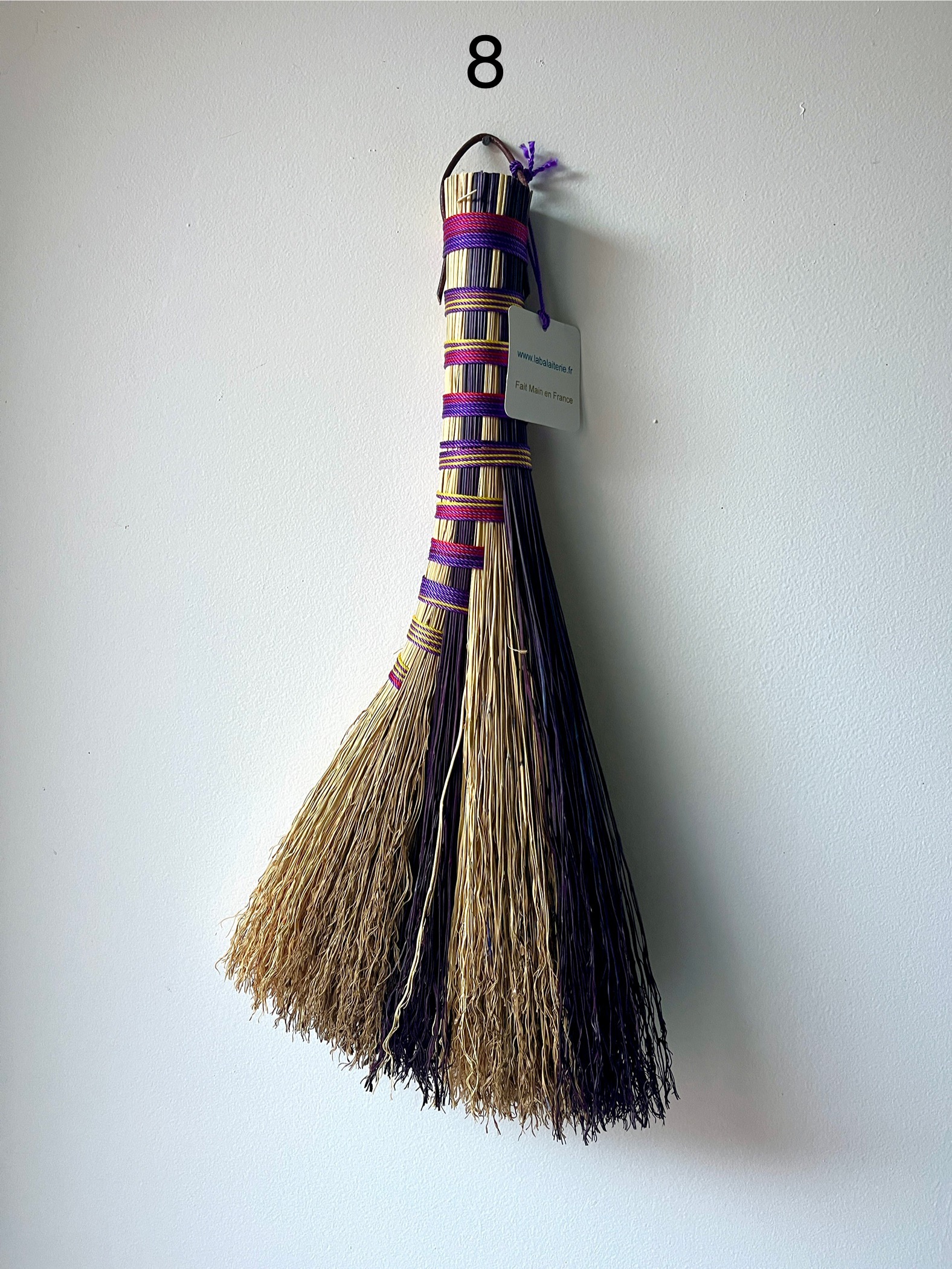 Cette forme vous fait penser à de l’artisanat japonais, et pourtant, elle est made in Normandie ! Cette balayette a entièrement été réalisée à la main : de la coupe de la paille, sa coloration, et le tressage du manche à l’aide de cordons de coton. Chaque pièce est unique !