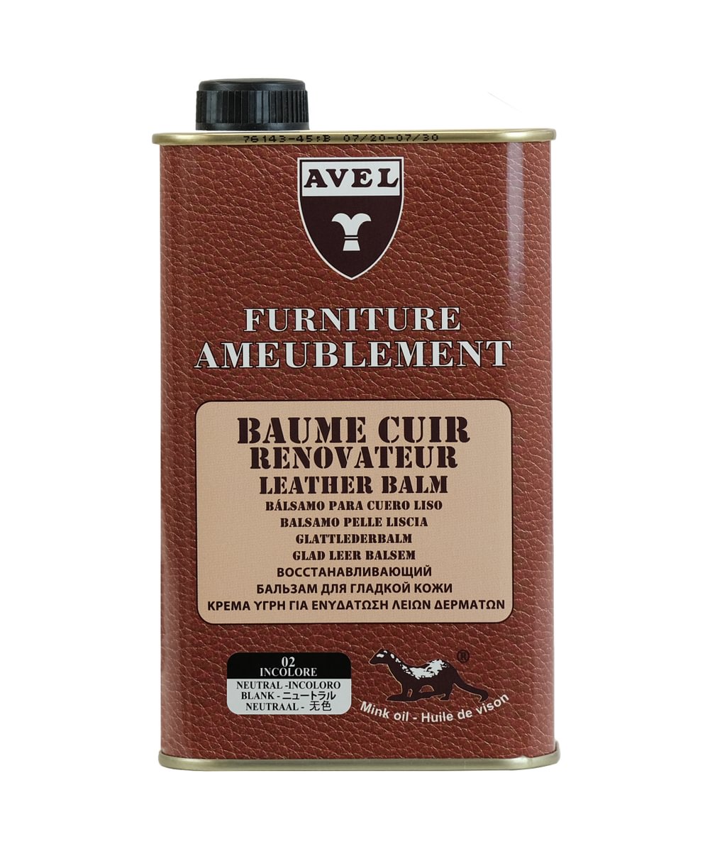 Baume cuir Rénovateur d’AVEL liquide enrichi en huile de macadamia, formulé pour hydrater le cuir lisse, raviver son éclat et renforcer sa résistance.