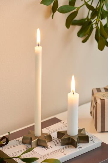 Bougie de type chandelle au diamètre standard pour être placée dans la plupart des bougeoirs.