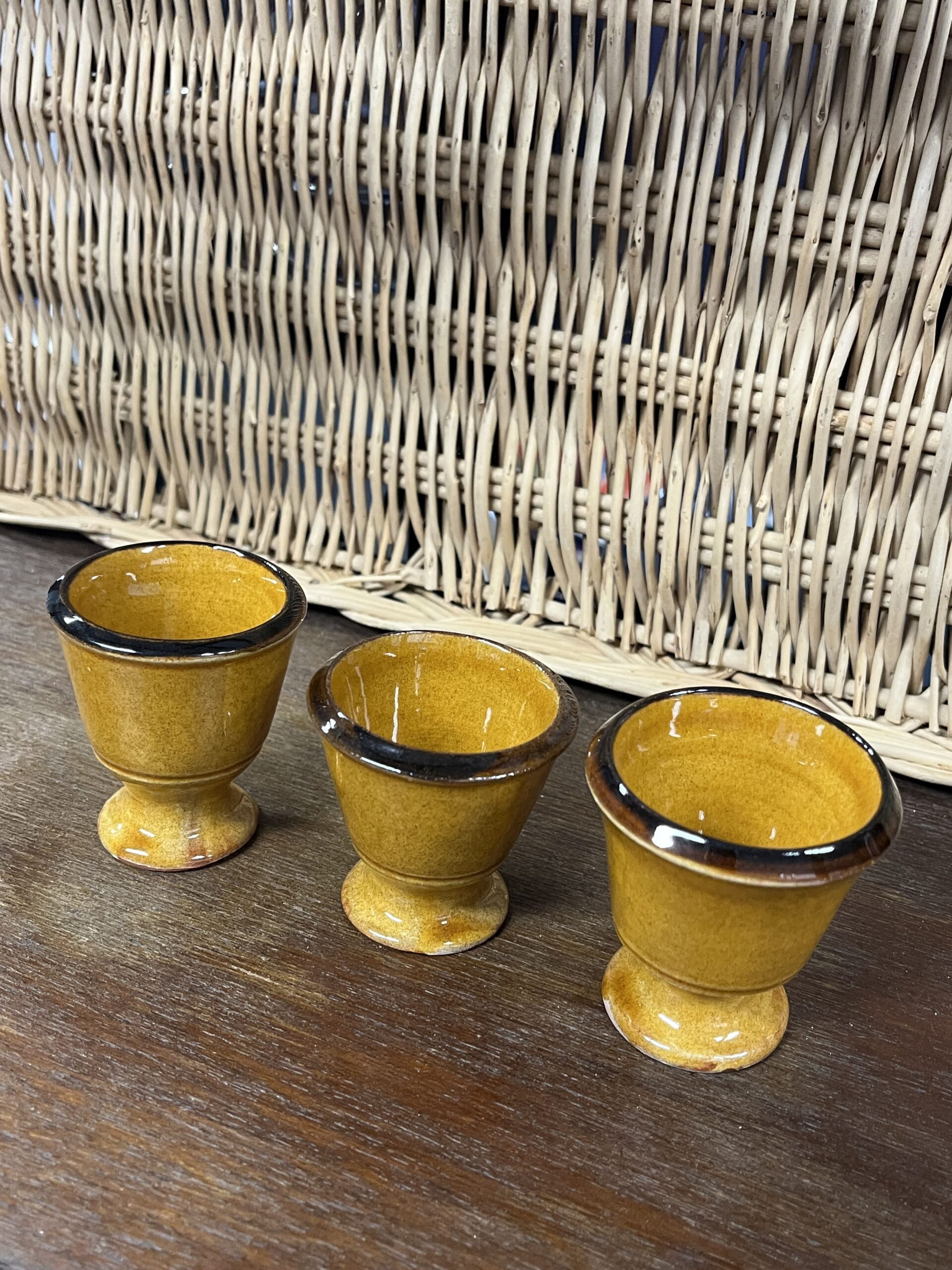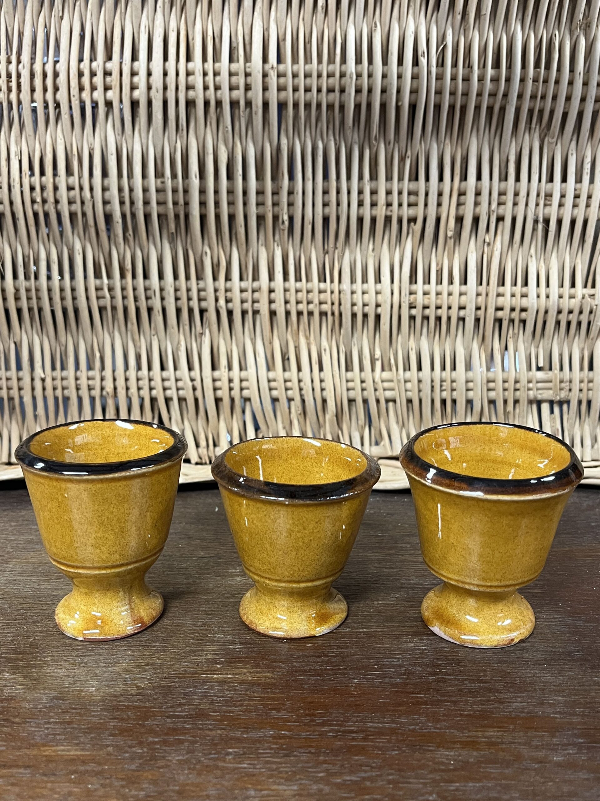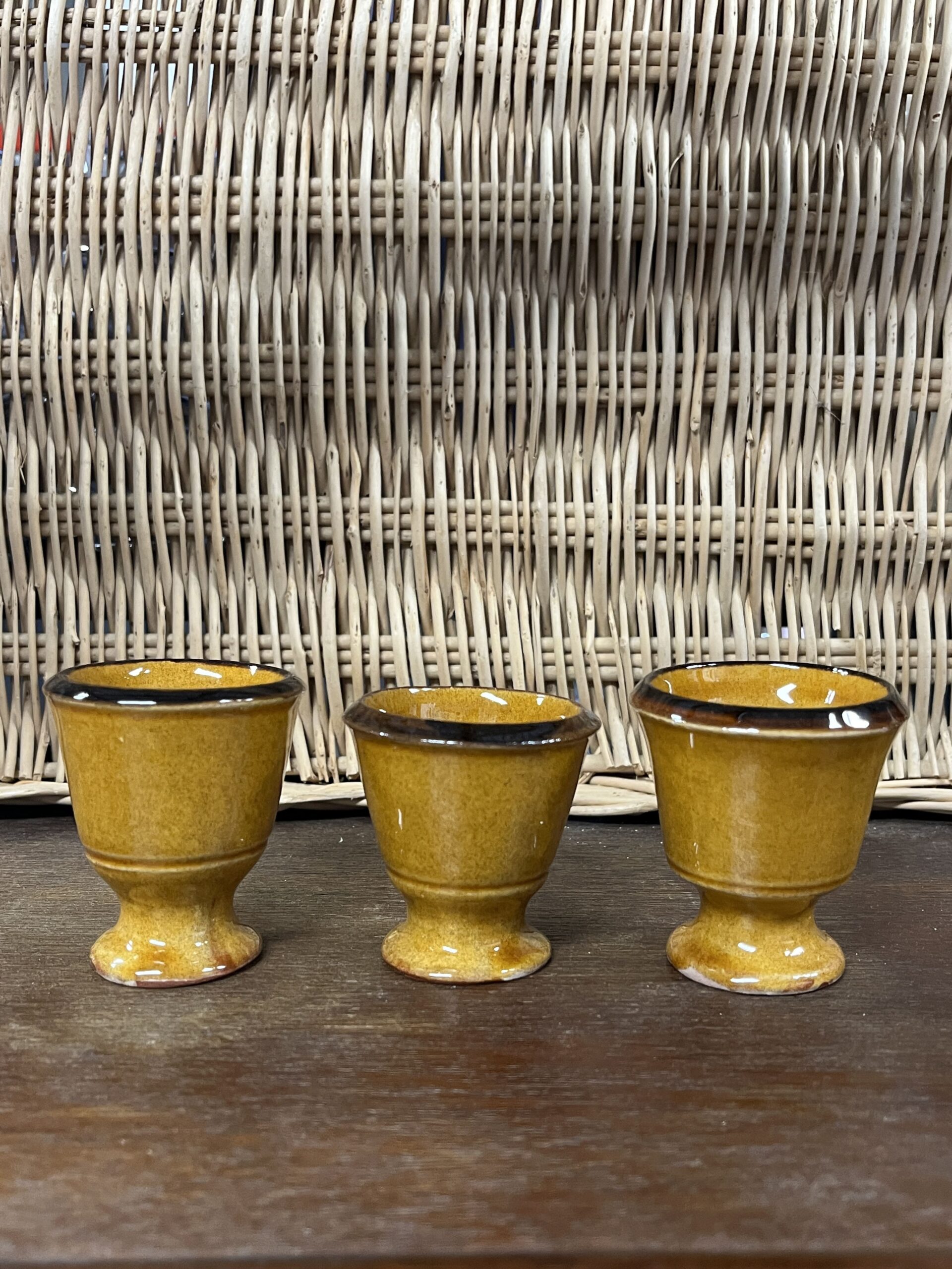 Coquetier en céramique fabriqué artisanalement par la Poterie Dieulefit. Émaillé de couleur miel, coloris typique du village de Dieulefit. Chaque coquetier est unique de part sa forme, sa taille et son diamètre car ils sont entièrement façonnés à la main.