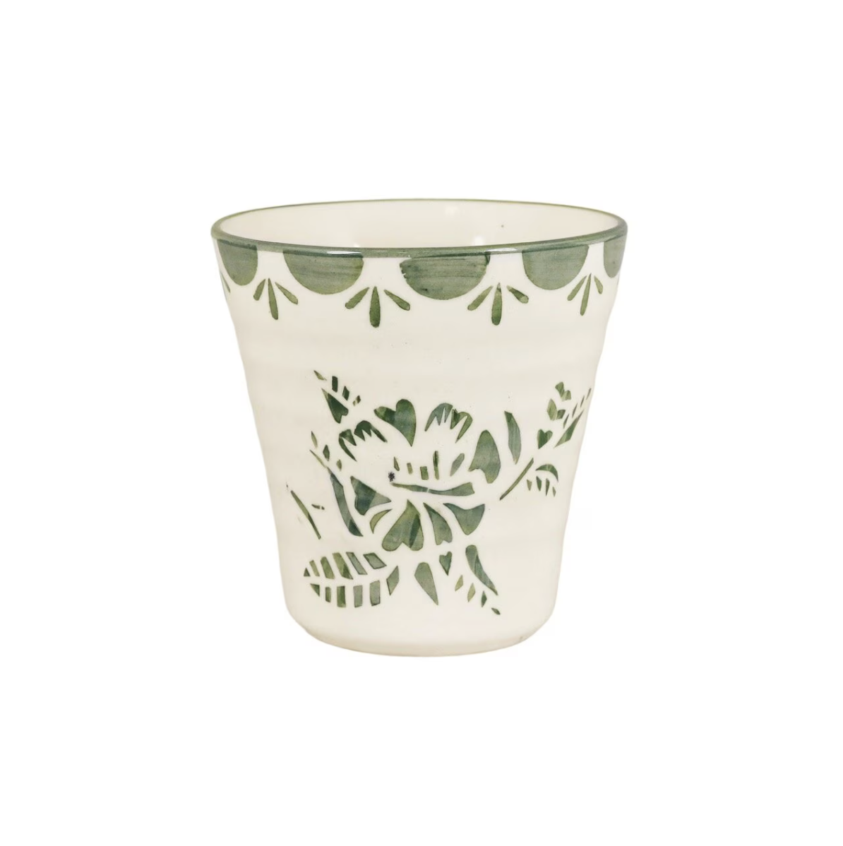 Mug en céramique de la marque suédoise Strömshaga avec un motif à l’ancienne à fleur et jolie bordure.