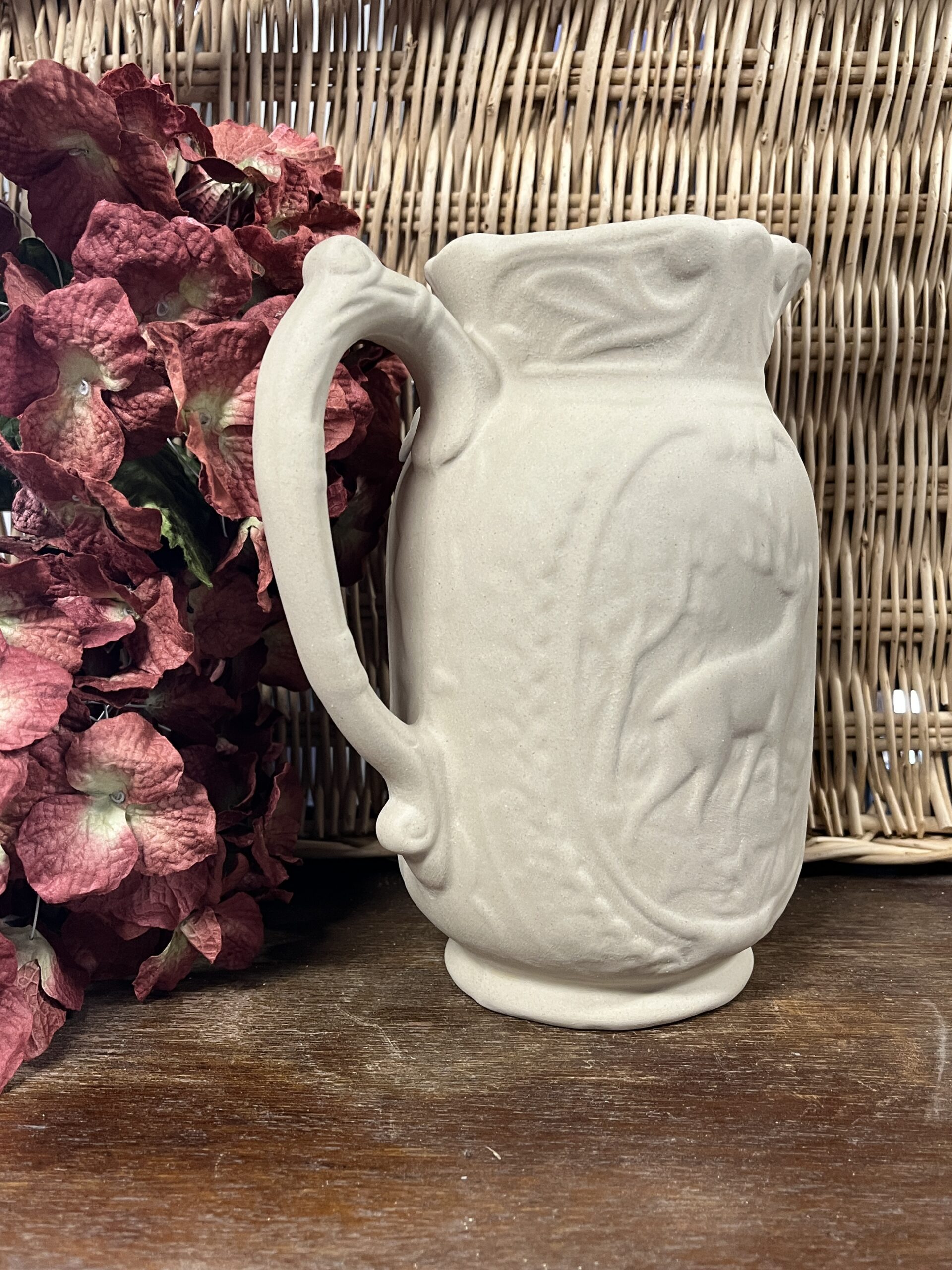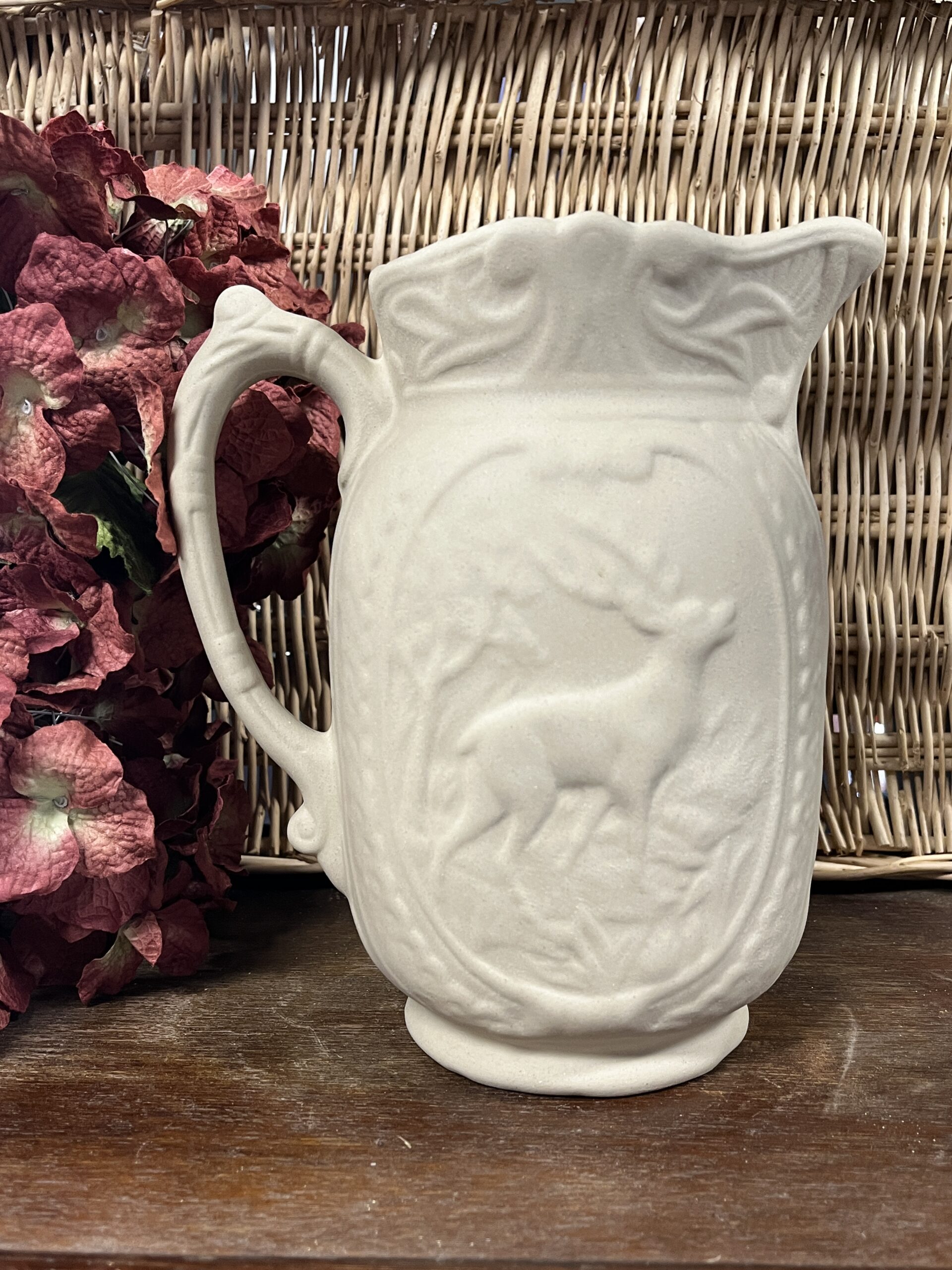 Le Pichet Cerf est la réédition fidèle d’un modèle ancien conservé dans les archives de la Manufacture de Digoin. Inspiré des barbotines du XIXᵉ siècle et des années 1900–1940, il met en valeur un motif animalier en relief d’une grande finesse, caractéristique des pichets décorés de l’époque.