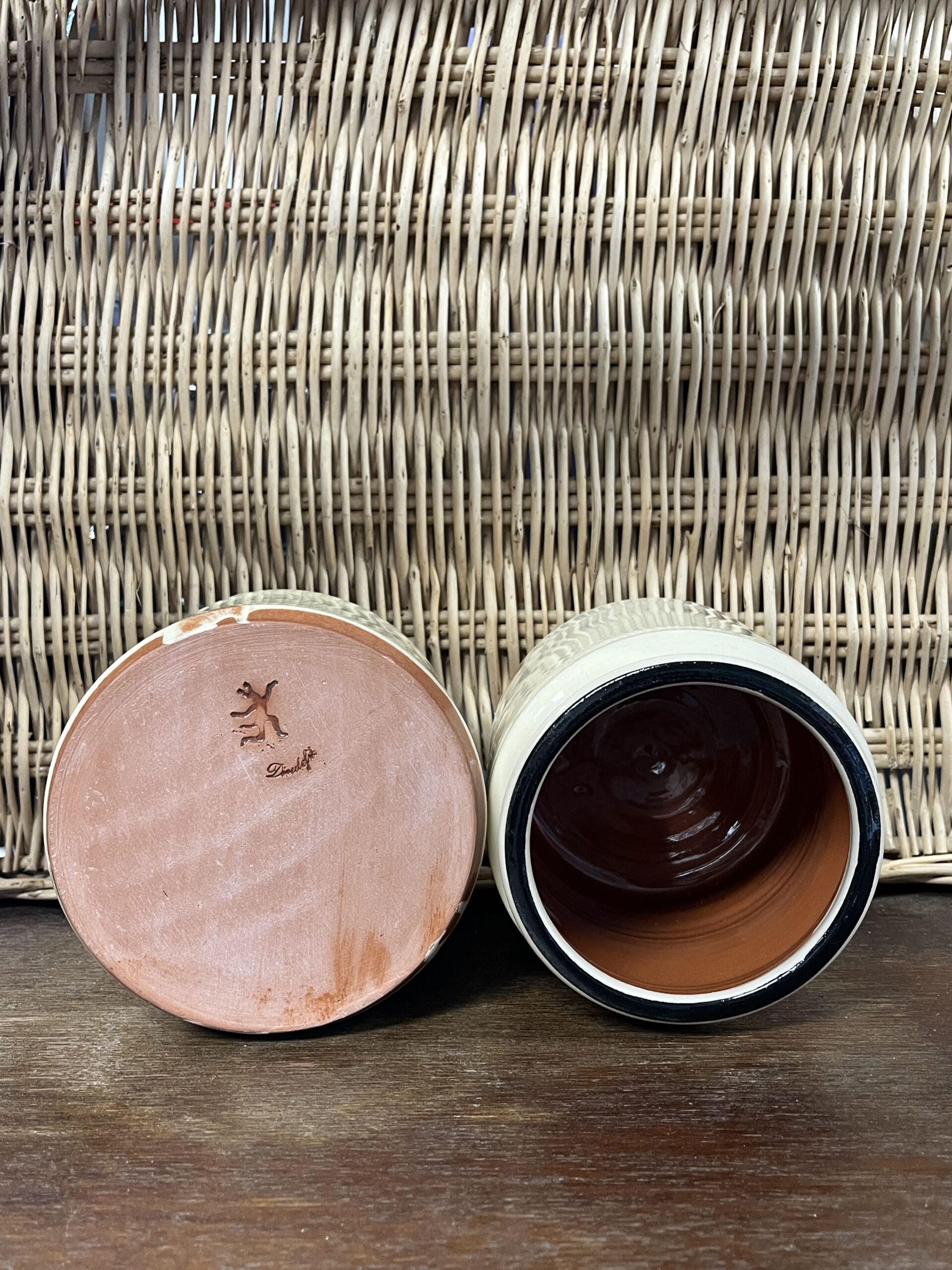 On peut apercevoir les empruntes du doigt du potier à la base de l’objet lors du processus d’émaillage.