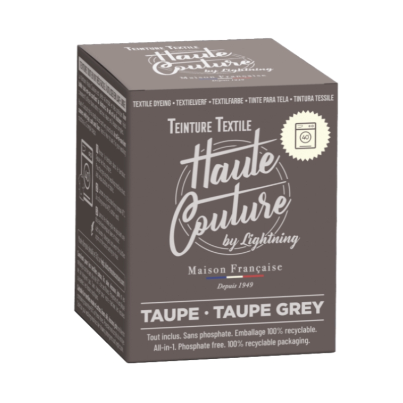 Découvrez la nouvelle teinture Gris taupe de la marque Haute Couture parmi une collection de 28 autres couleurs. Reteignez un canapé délavé, un vêtement taché ou encore donnez du pep’s à une vieille nappe avec ces teintures faciles à utiliser en machine à laver.